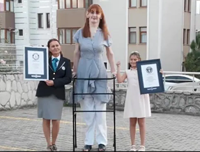 Rumeysa Gelgi from Turkey becomes the tallest living woman in the world with a height of 215.16cm (7ft 0.7in).