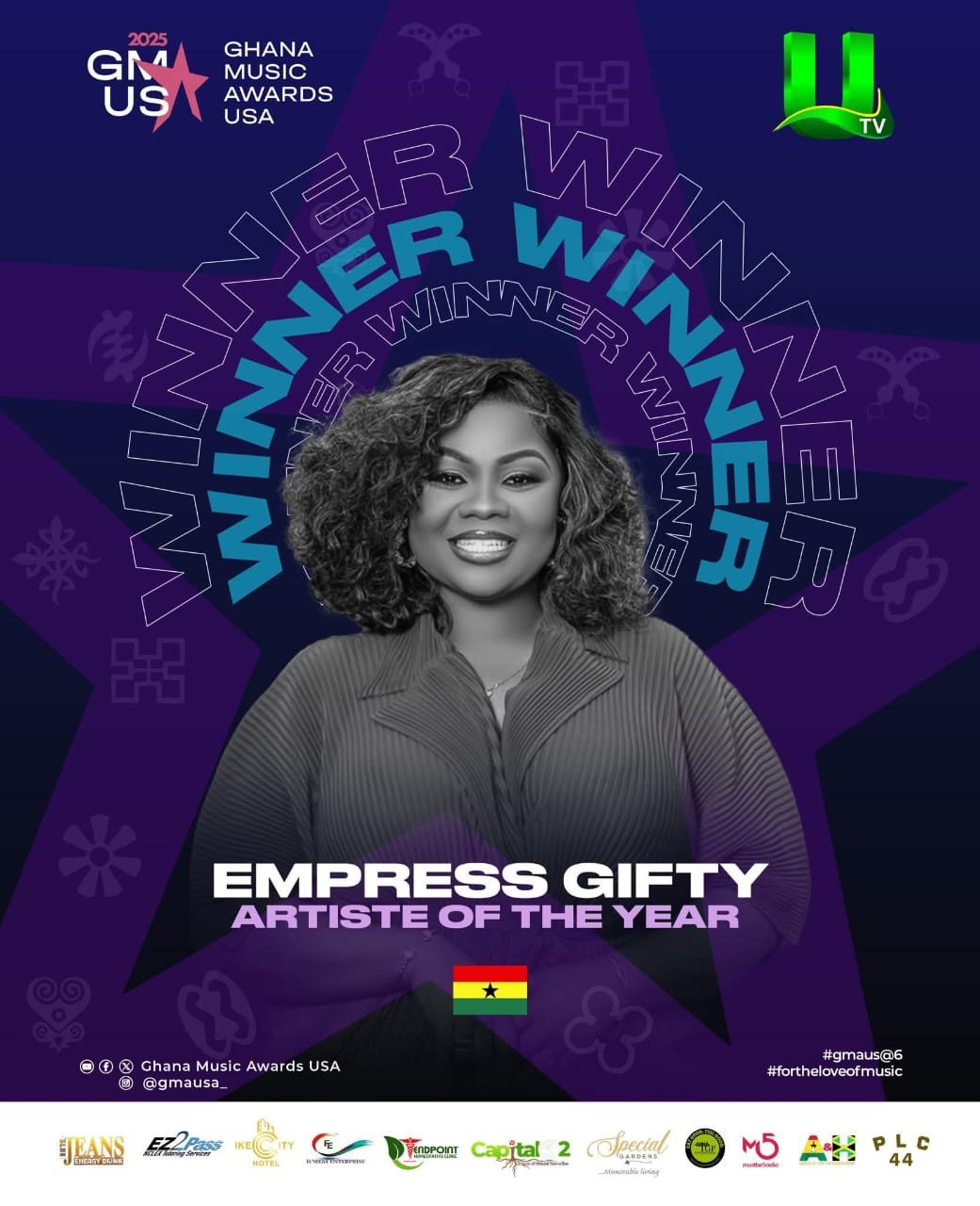Renowned Ghanaian gospel musician, Empress Gifty Adorye, has been crowned Artiste of the Year at the 6th edition of the Ghana Music Awards USA held on August 16, 2025, at ACX1 Studios in Atlantic City, New Jersey.