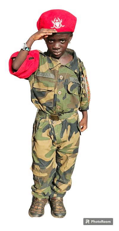 Based on this, she is determined to be an officer of the Ghana Armed Forces (GAF) specifically with the Military Police when she grows.