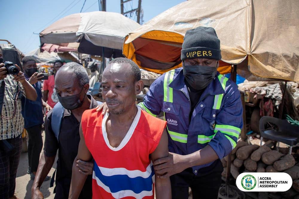 The Accra Metropolitan Assembly (AMA) has arrested twenty-one (21) traders for displaying and selling their wares on open drains at the Agbogbloshie Market in violation of the city’s sanitation and public health regulations.