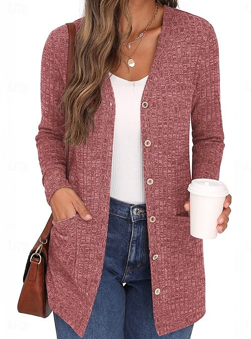 Long Cardigans extend below the hips and can be a stylish layering piece, often reaching the knee or even the ankle.