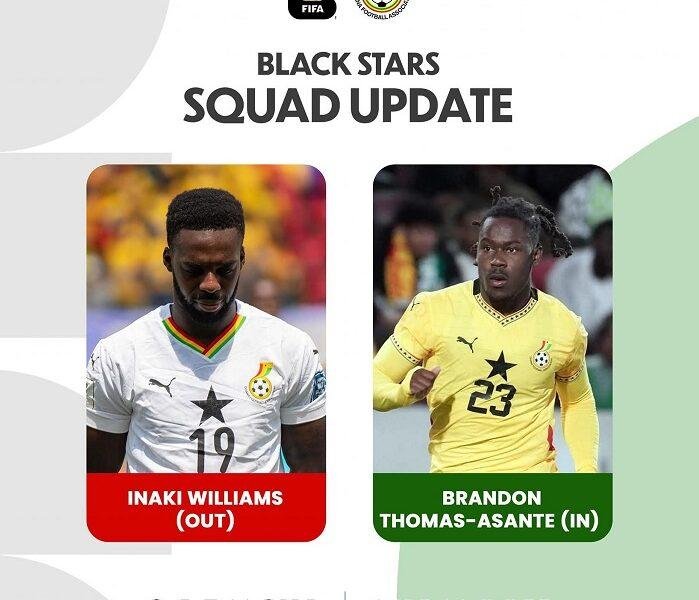 Coventry City striker Brandon Thomas-Asante has replaced Inaki Williams for the 2026 FIFA World Cup qualifiers against Central African Republic and Comoros. The 26-year-old, who scored...