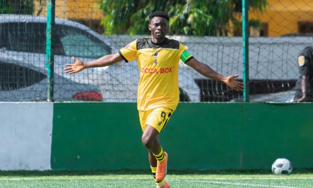 Top marksman Micheal Ayertey was on hand to save high flying Parin FC as they beat Prestige Heights 2-1 in the Accra North District Football Association...