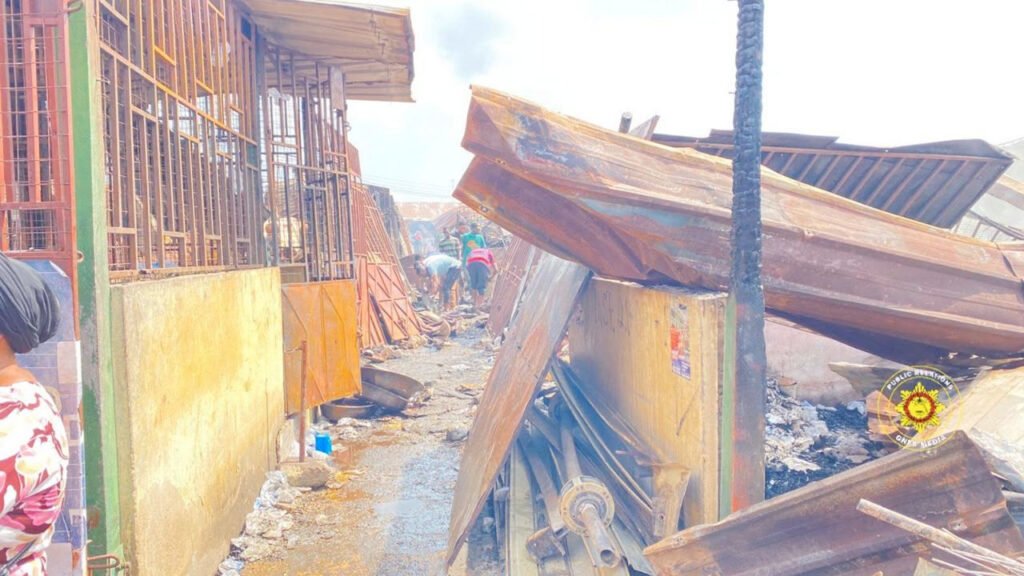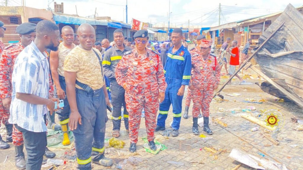 Central regional fire commander inspects Kasoa market fire site