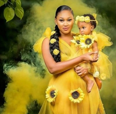 Here’s a mother and daughter twinning dress ideas that will inspire you. You may decide to pair two or more different pieces of fabric to create a beautiful dress for you and your baby.