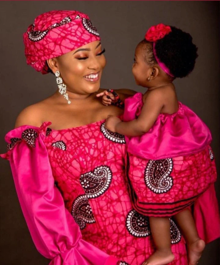 Here’s a mother and daughter twinning dress ideas that will inspire you. You may decide to pair two or more different pieces of fabric to create a beautiful dress for you and your baby.