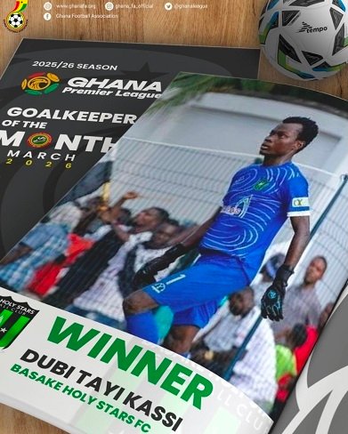Dubi Tayi Kassi of Basake Holy Stars has been named Goalkeeper of the Month for March, edging out strong competition from Gidios Aseako of Dreams FC and Daniel Afadzwu of Karela United FC.