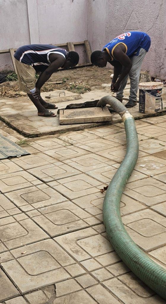 Godfred Abayateye inspecting a truck after collecting human waste to ensure there is no spillage