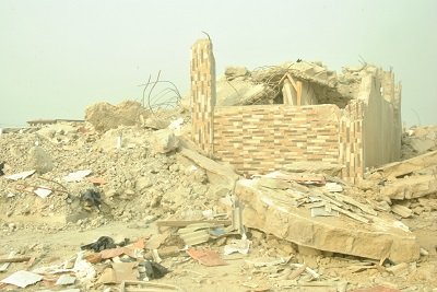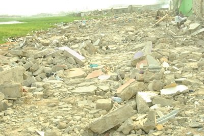 This is the scene of the demolition of some illegal structures along the Glefe lagoon near Dansoman in the Ablekuma West Municipal Assembly of the Greater Accra Region.
