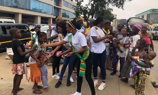 The Miss Tourism Ghana Princesses gave food, among other items, to homeless people on the streets of Accra.