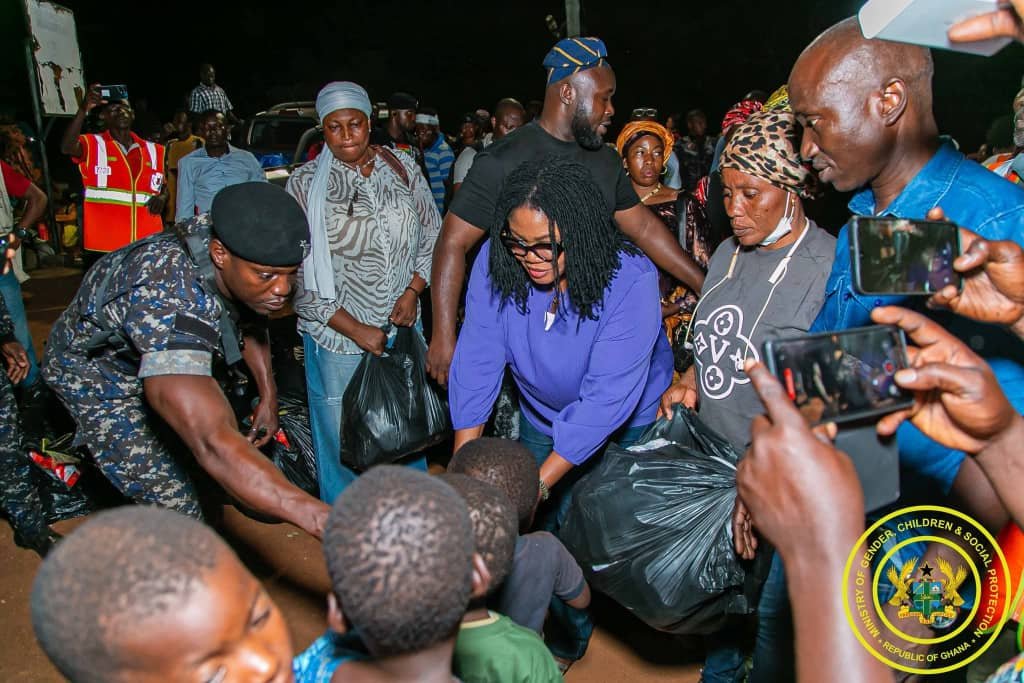 Leading the delegation, Minister for Gender, Children and Social Protection, Dr. Agnes Naa Momo Lartey, distributed cooked meals and water to the victims and assured them of government’s continued support.