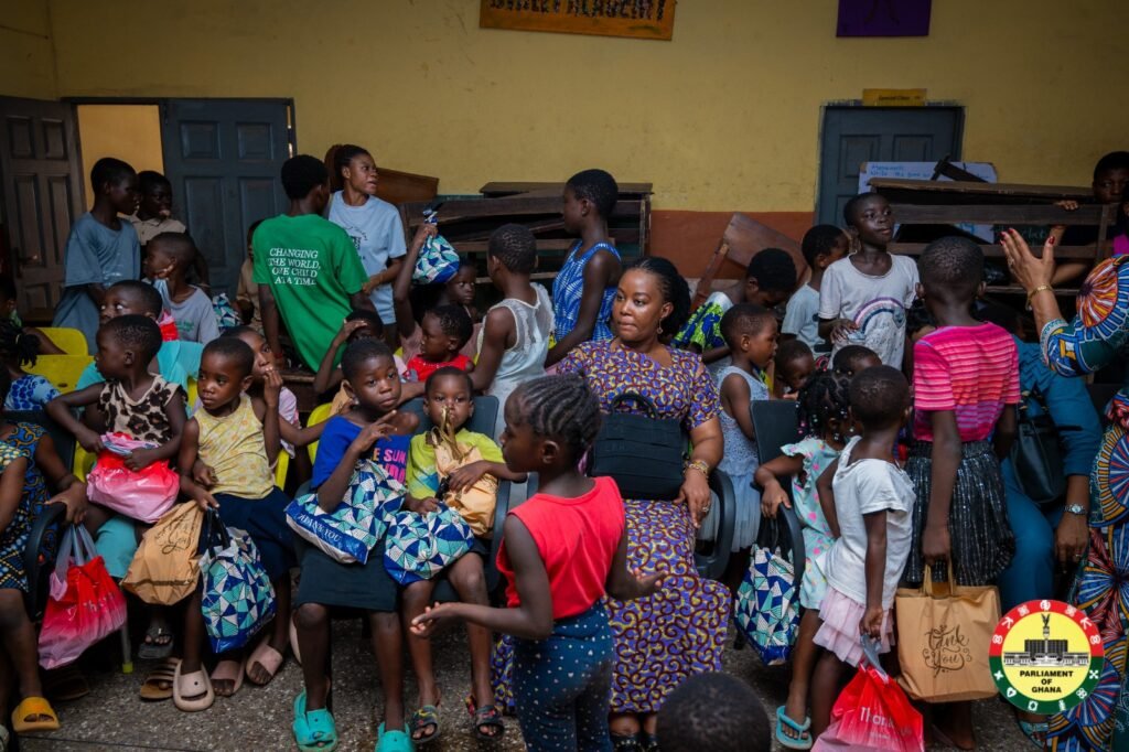 Ms Sackey Addo noted that the Member of Parliament for Ablekuma North Ms Ewurabena (Right) with other members of the women caucus of parliament interacting with the children