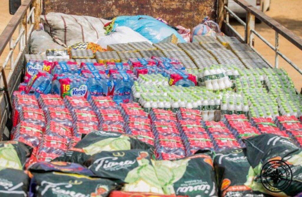 Various items ranging from 100 bags of rice, 200 packs of bottled water, 50 bags of sachet water, 250 packs of soft drinks, clothes, wrappers, pairs of footwear, books and packs of powdered soap worth over GH₵300,000 were presented to the victims.