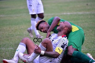 In his last-ditch attempt to get his name emblazoned on the scoring sheet, the Ghana captain nearly sustained a nasty injury as a Sao Tome defender lunged his foot on the path of Andre who for several minutes, had to receive medical attention on the pitch.