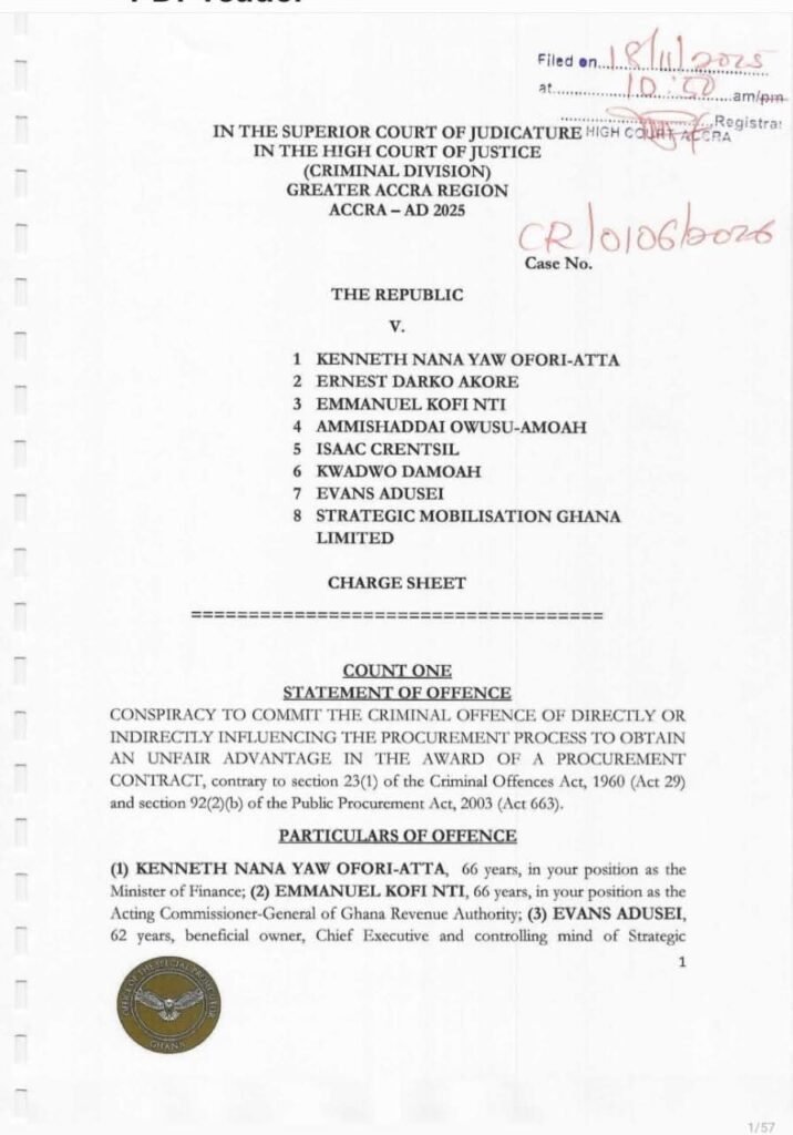 Those charged include former senior officials of the Ghana Revenue Authority and persons connected to Strategic Mobilisation Ghana Limited. The company has also been listed as an accused entity.