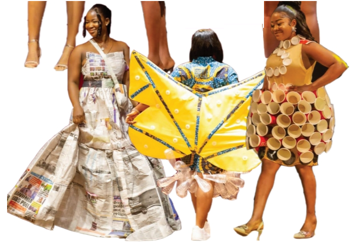 The designs were made from newspapers, plastic bottles, straw and many more.