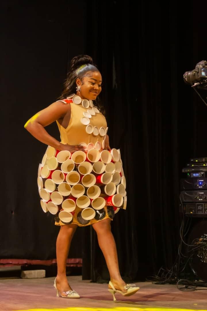 The designs were made from newspapers, plastic bottles, straw and many more.