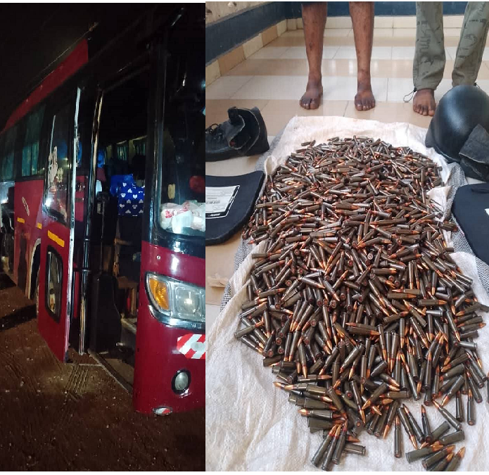 A thorough search conducted on the bus revealed two containers concealed in the vehicle, which contained a total of two thousand six hundred (2,600) AK 47 ammunition.