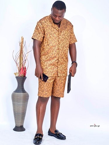 The outfit was created in a simple political suit style with lapel made with brocade and plain fabric.