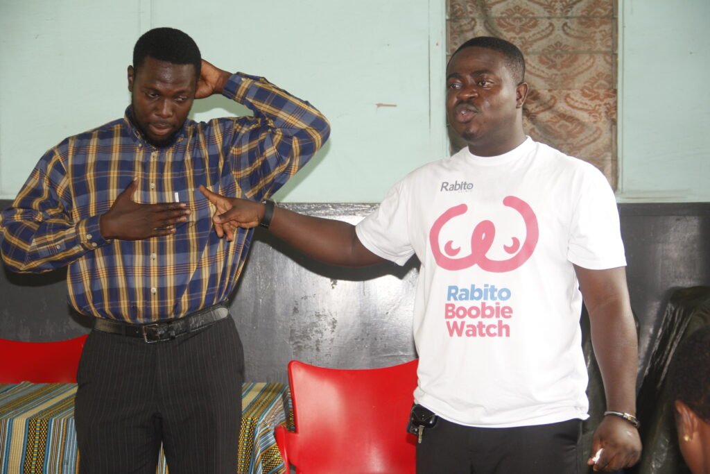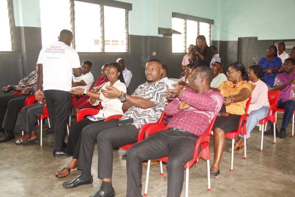 During the session, Mr Agyekum demonstrated the ‘look and feel’ method, a simple yet effective technique for detecting abnormalities in the breast, showing staff how to visually inspect the breast for changes in shape, size, and skin colour, and how to manually check for lumps or unusual feelings.