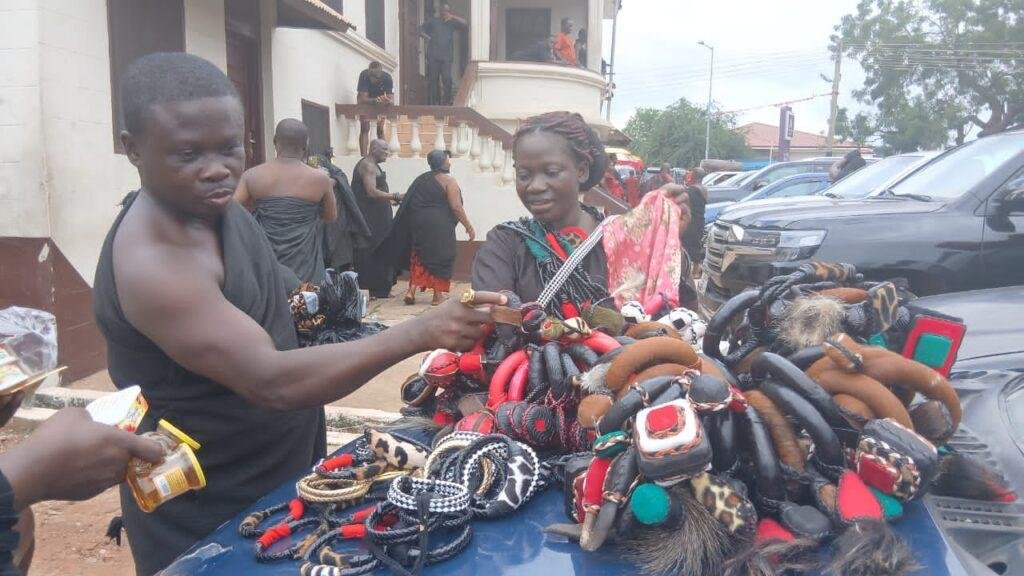 But, even in mourning, life finds a way to celebrate culture. Across the Palace, sales of mourning cloths, (Kuntunkuri), amulets, ‘Ahenema’—the traditional royal slippers also known as ‘Kyawkyaw’—have skyrocketed during the funeral rites.