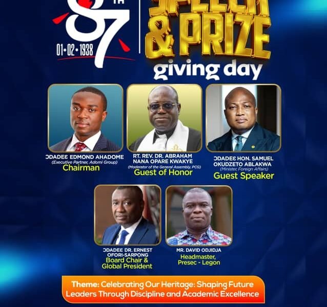 The Presbyterian Boys’ Senior High School, Legon (PRESEC) is set to hold its 87th Speech and Prize Giving Day on Saturday, November 29, 2025, to honour...
