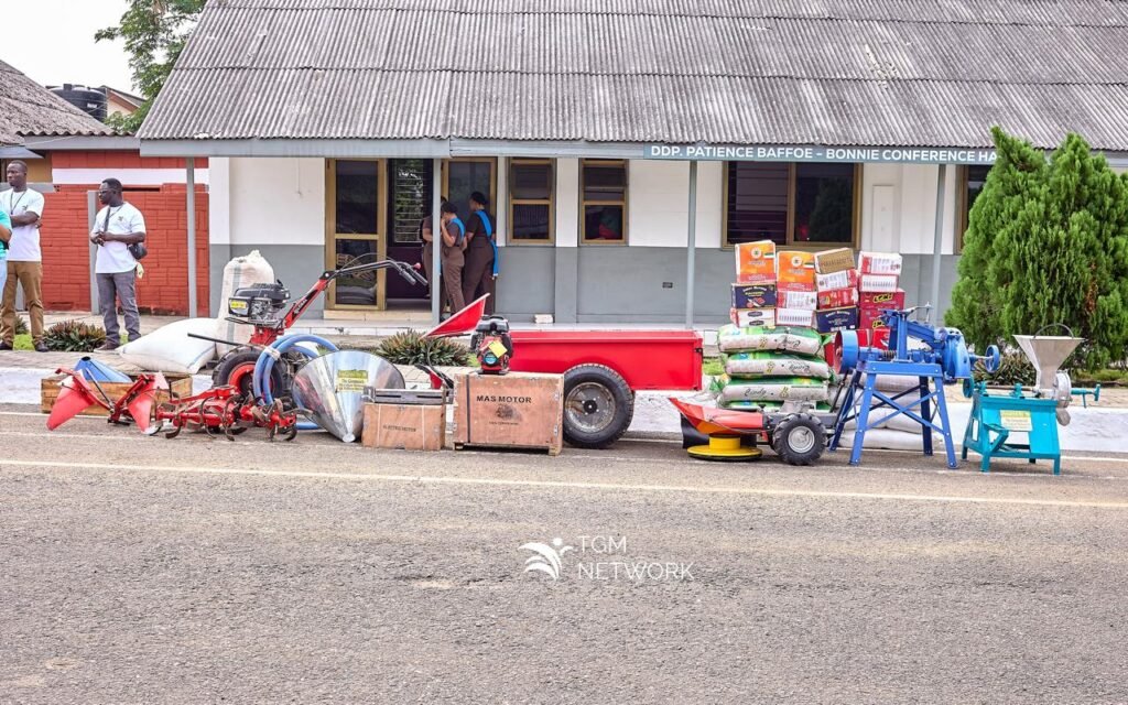 These included a multipurpose plough, a vegetable grinder, a corn mill, bags of sugar, maize, and beans, assorted canned foods, and sachet water.