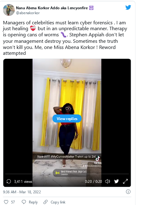 Socialite Abena Korkor has hit back at the former Black Stars captain, Stephen Appiah, for dismissing claims of their sexual affair.