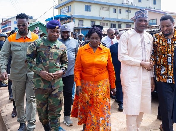 She was accompanied by the Minister for the Interior, Muntaka Mohammed-Mubarak, as well as officials from the Ghana Armed Forces (48 Engineer Regiment), Ghana Police Service, Ghana National Fire Service, National Ambulance Service, and NADMO.