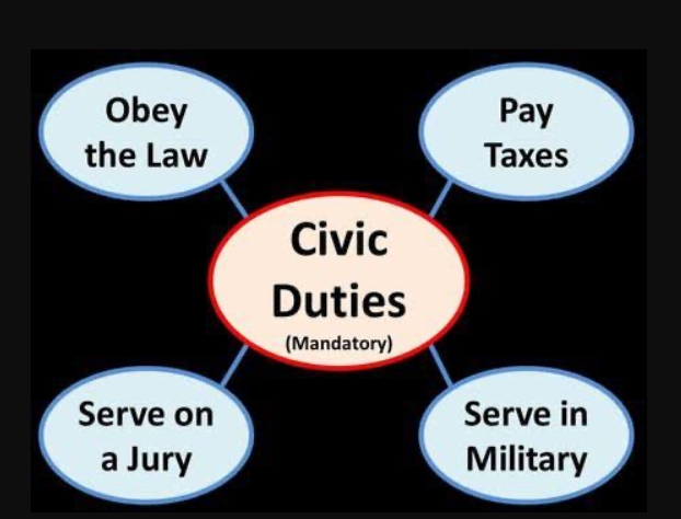 Civic responsibility means obeying laws, promoting peace, and working for community welfare.
